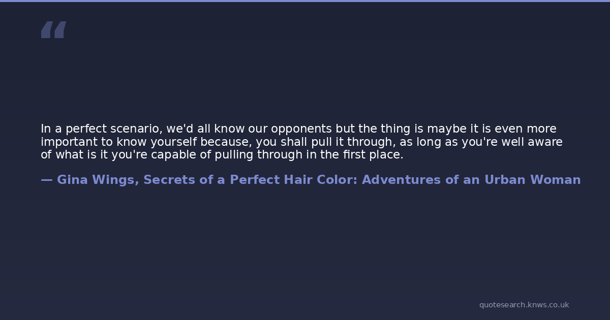 In a perfect scenario, we'd all know our opponents but the thing is maybe it is even more important to know yourself because, you shall pull it through, as long as you're well aware of what is it you're capable of pulling through in the first place.