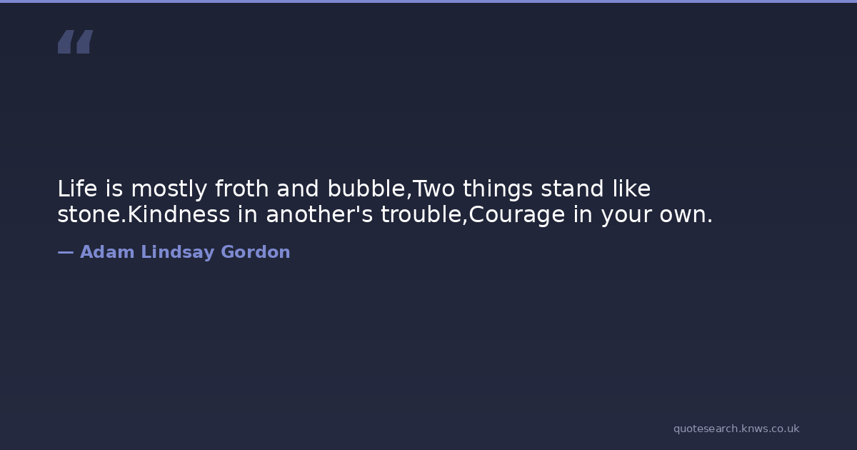 Life is mostly froth and bubble,Two things stand like stone.Kindness in another's trouble,Courage in your own.