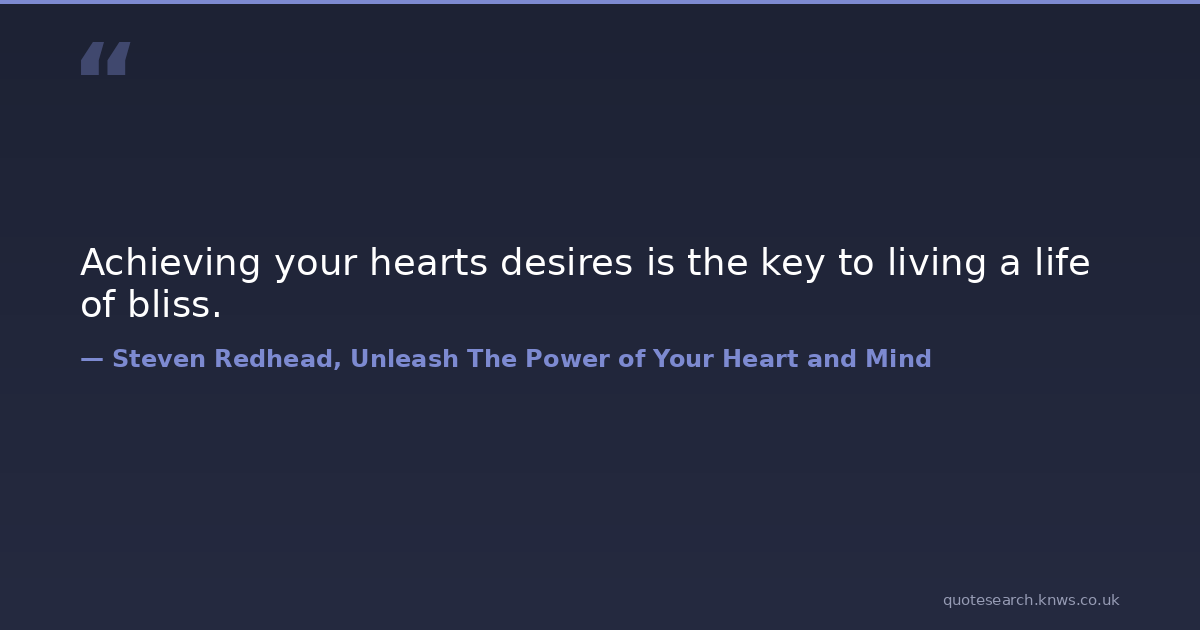 Achieving your hearts desires is the key to living a life of bliss.