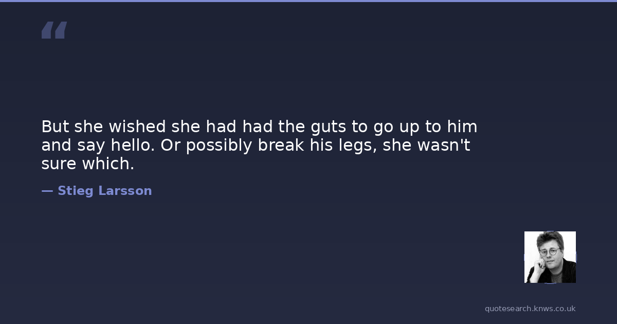 But she wished she had had the guts to go up to him and say hello. Or possibly break his legs, she wasn't sure which.