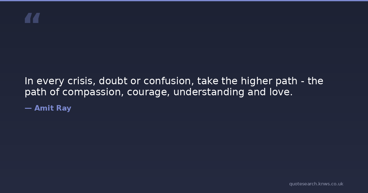 In every crisis, doubt or confusion, take the higher path - the path of compassion, courage, understanding and love.