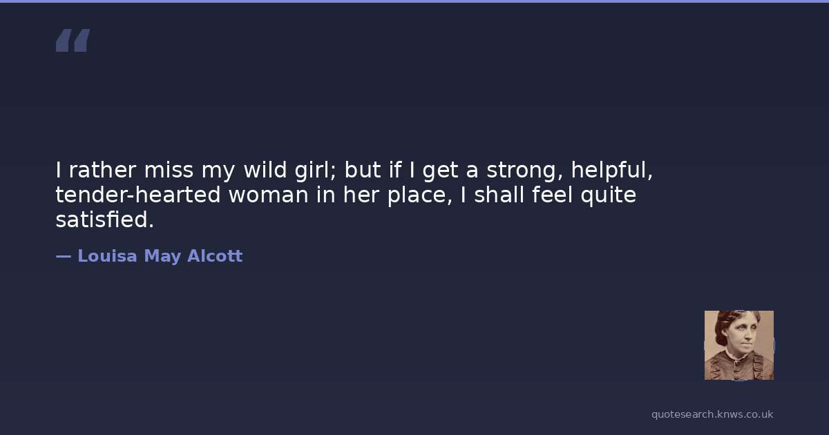 I rather miss my wild girl; but if I get a strong, helpful, tender-hearted woman in her place, I shall feel quite satisfied.