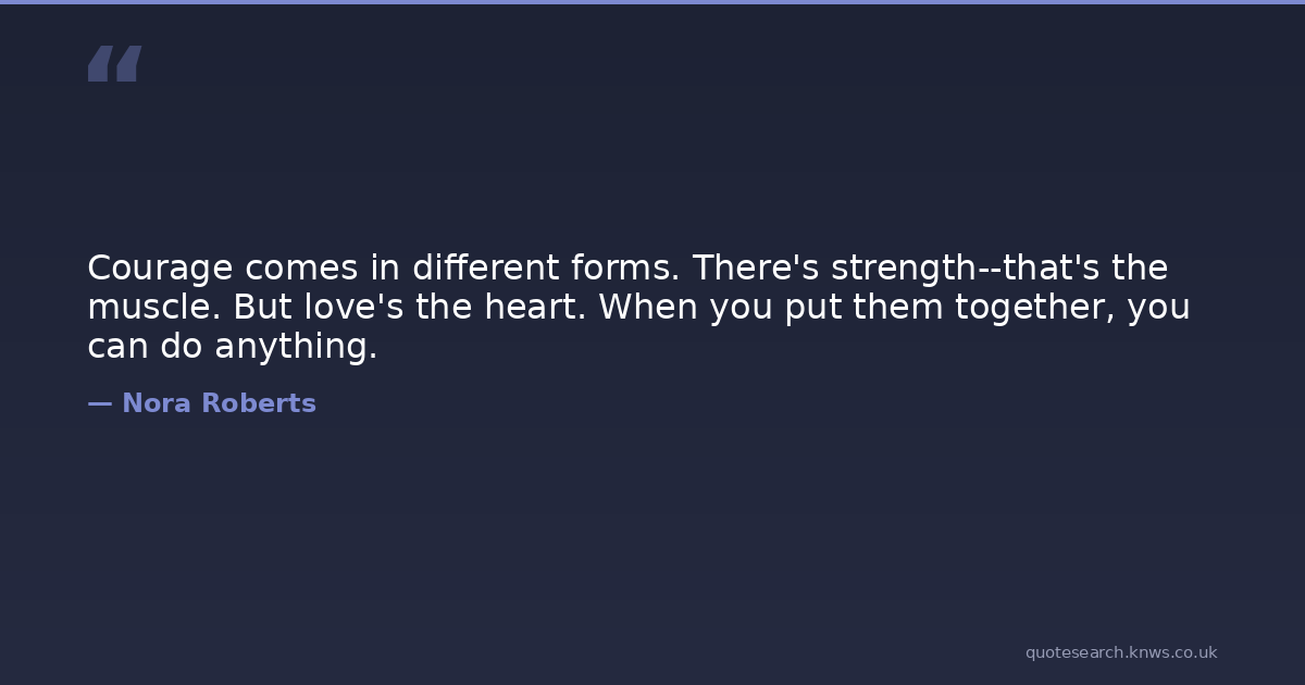 Courage comes in different forms. There's strength--that's the muscle. But love's the heart. When you put them together, you can do anything.