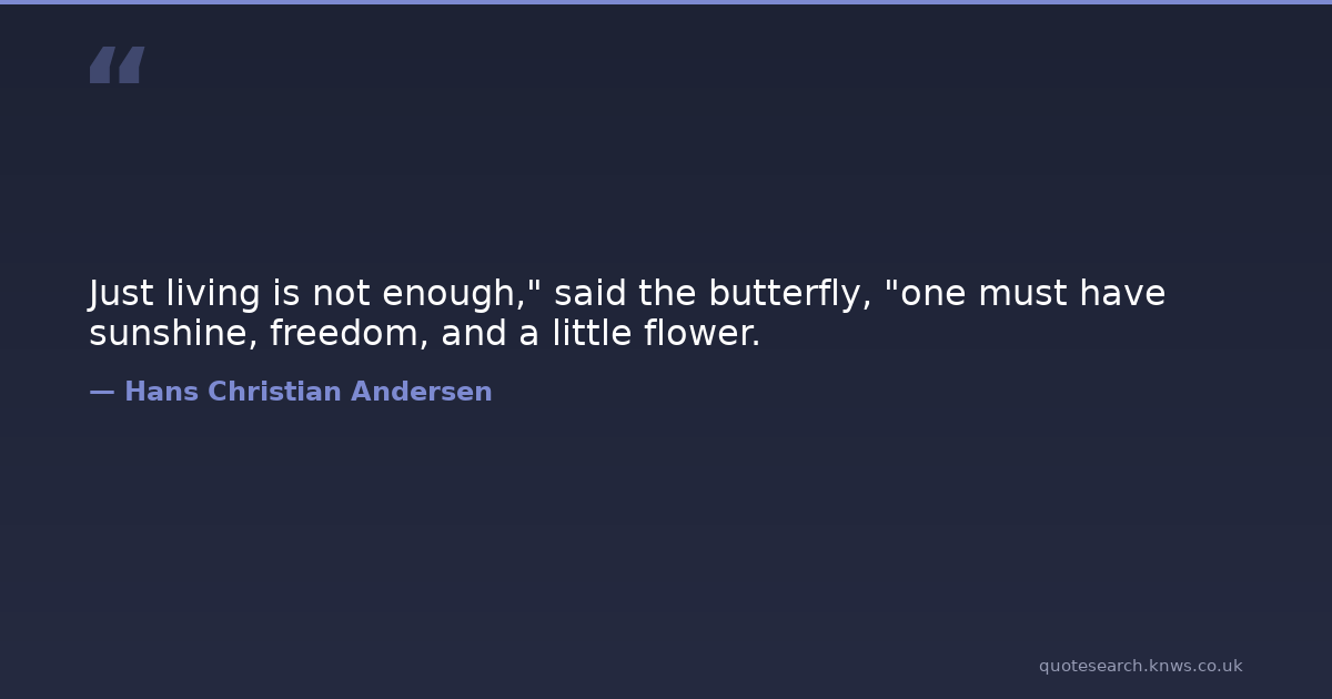 Just living is not enough," said the butterfly, "one must have sunshine, freedom, and a little flower.