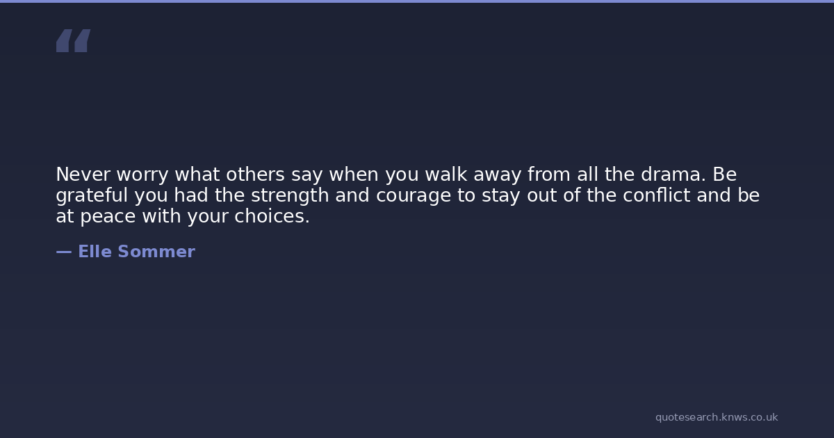 Never worry what others say when you walk away from all the drama. Be grateful you had the strength and courage to stay out of the conflict and be at peace with your choices.