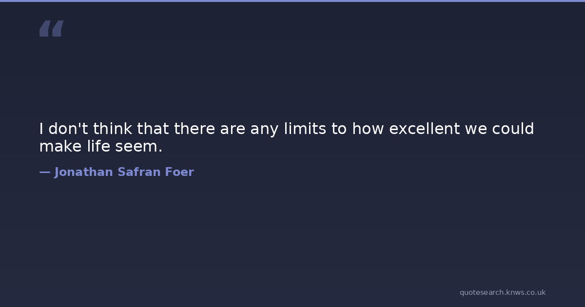 I don't think that there are any limits to how excellent we could make life seem.