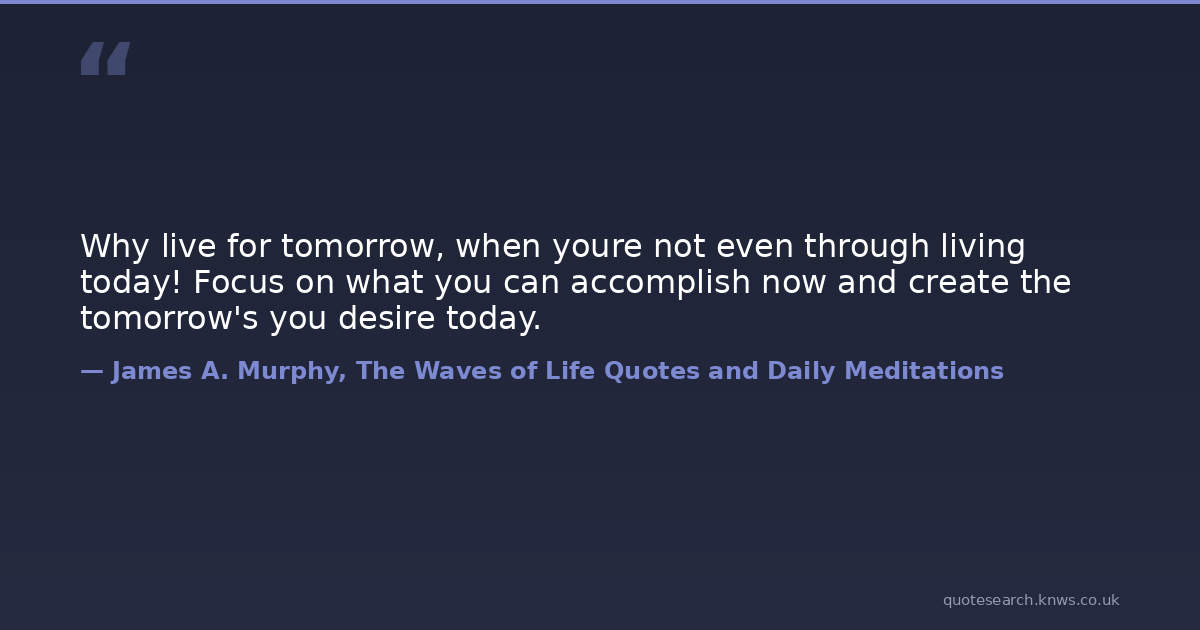 Why live for tomorrow, when youre not even through living today! Focus on what you can accomplish now and create the tomorrow's you desire today.