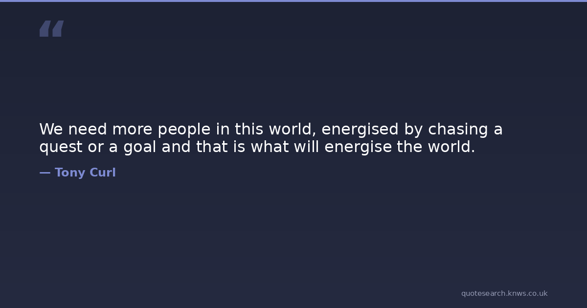 We need more people in this world, energised by chasing a quest or a goal and that is what will energise the world.
