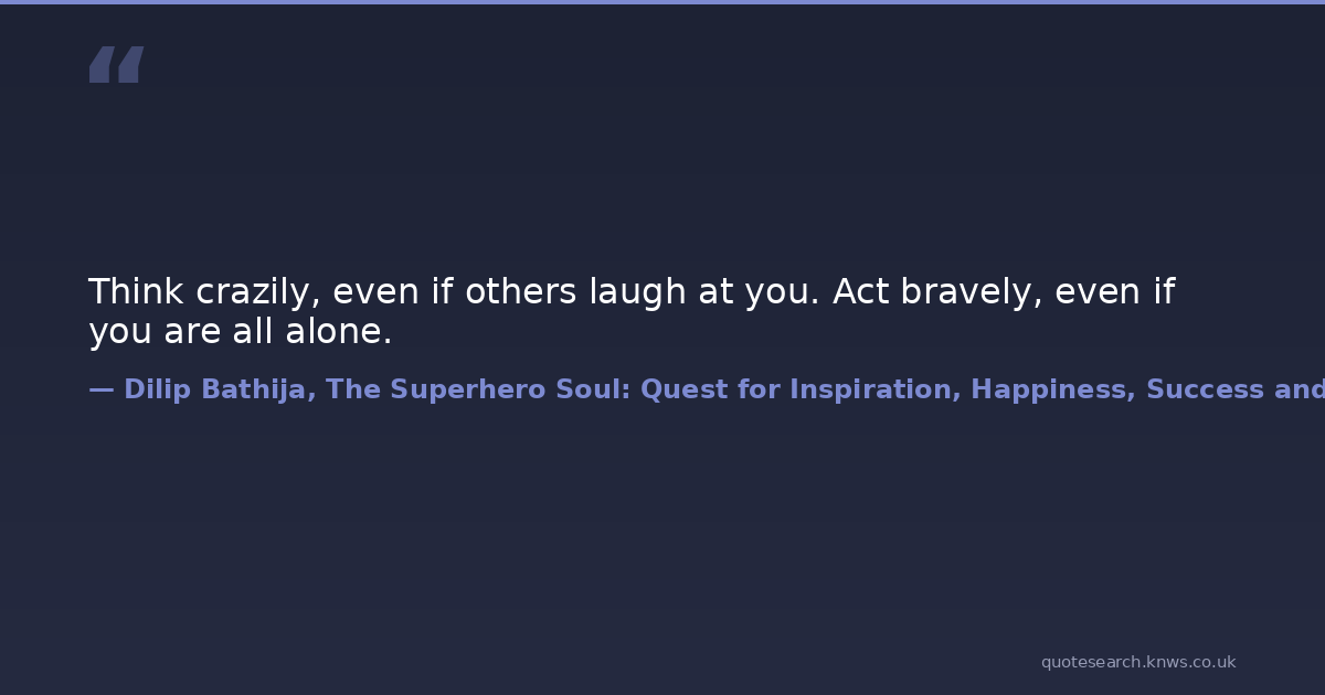 Think crazily, even if others laugh at you. Act bravely, even if you are all alone.