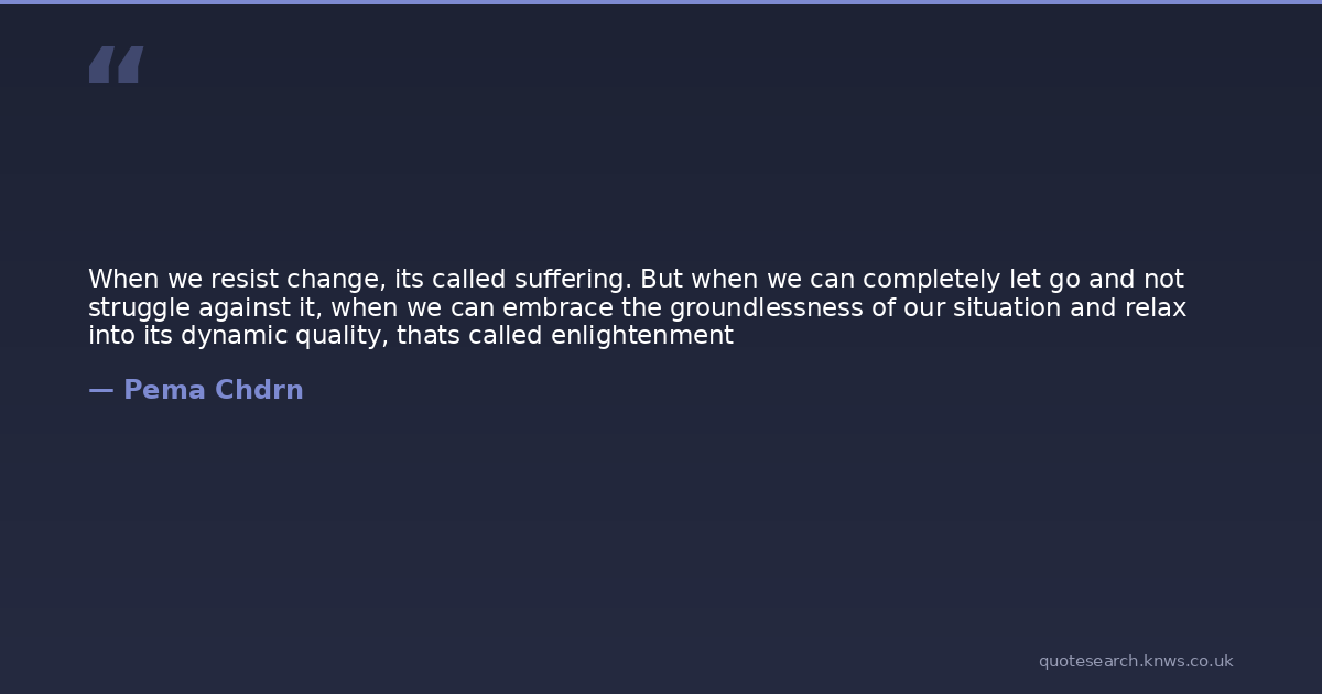 When we resist change, its called suffering. But when we can completely let go and not struggle against it, when we can embrace the groundlessness of our situation and relax into its dynamic quality, thats called enlightenment