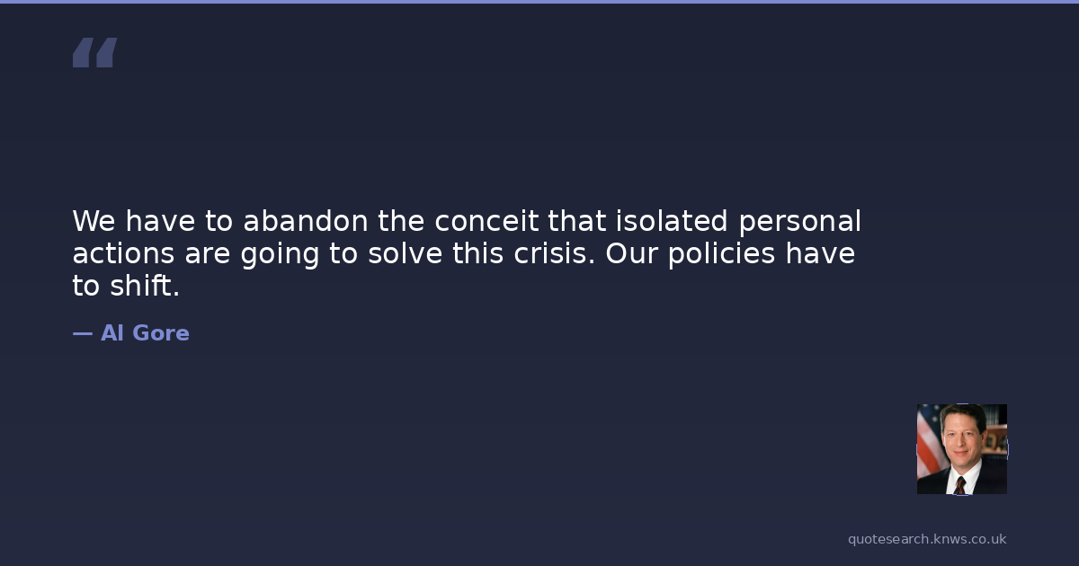 We have to abandon the conceit that isolated personal actions are going to solve this crisis. Our policies have to shift.