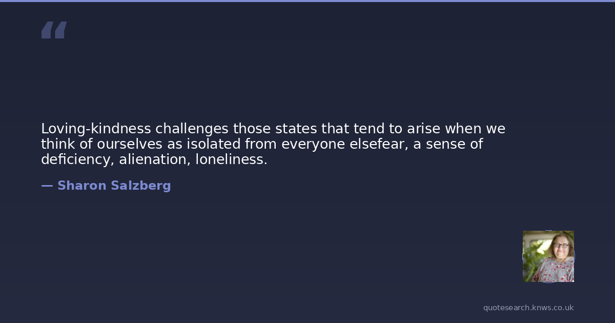 Loving-kindness challenges those states that tend to arise when we think of ourselves as isolated from everyone elsefear, a sense of deficiency, alienation, loneliness.
