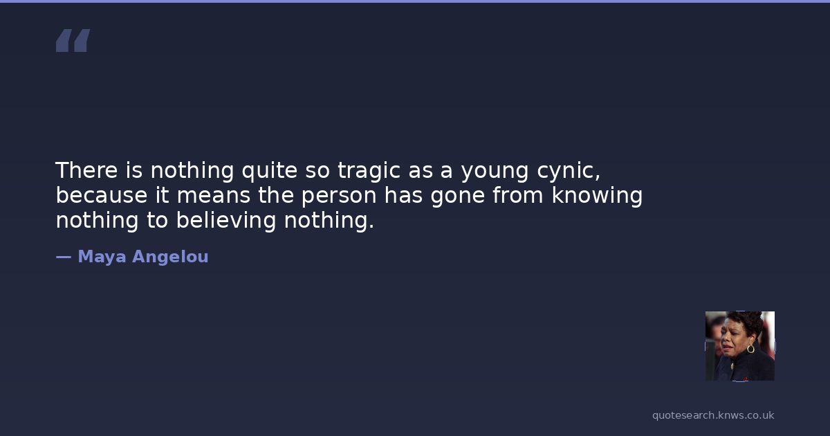 There is nothing quite so tragic as a young cynic, because it means the person has gone from knowing nothing to believing nothing.