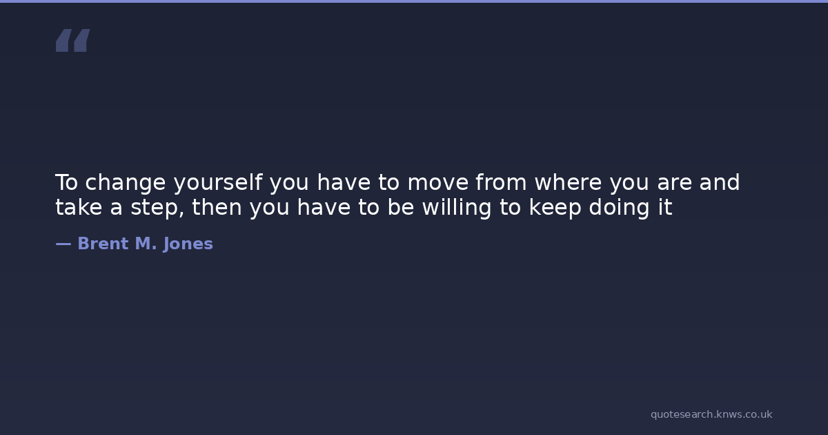 To change yourself you have to move from where you are and take a step, then you have to be willing to keep doing it