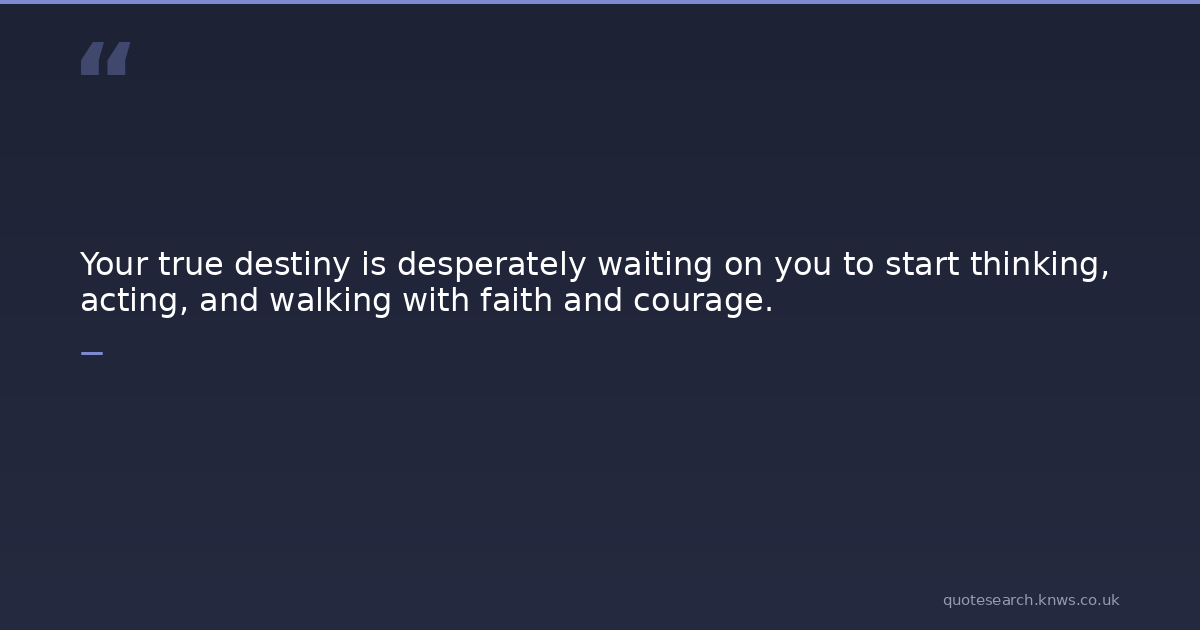 Your true destiny is desperately waiting on you to start thinking, acting, and walking with faith and courage.