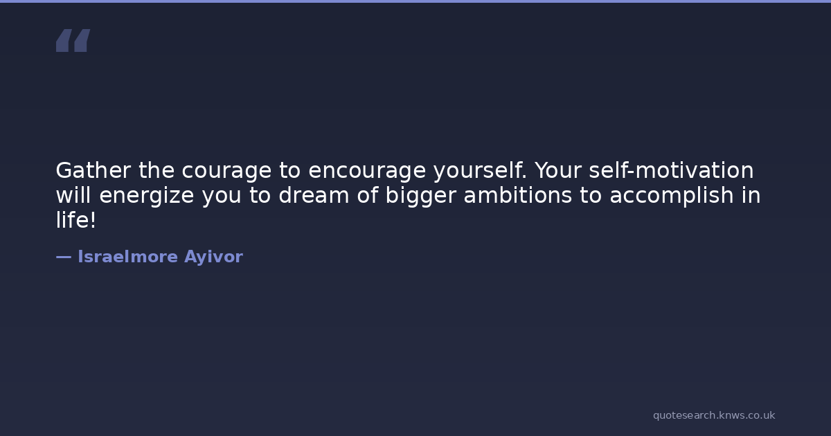 Gather the courage to encourage yourself. Your self-motivation will energize you to dream of bigger ambitions to accomplish in life!