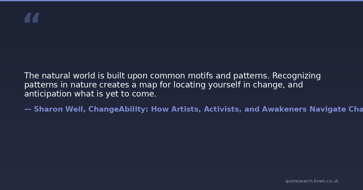 The natural world is built upon common motifs and patterns. Recognizing patterns in nature creates a map for locating yourself in change, and anticipation what is yet to come.