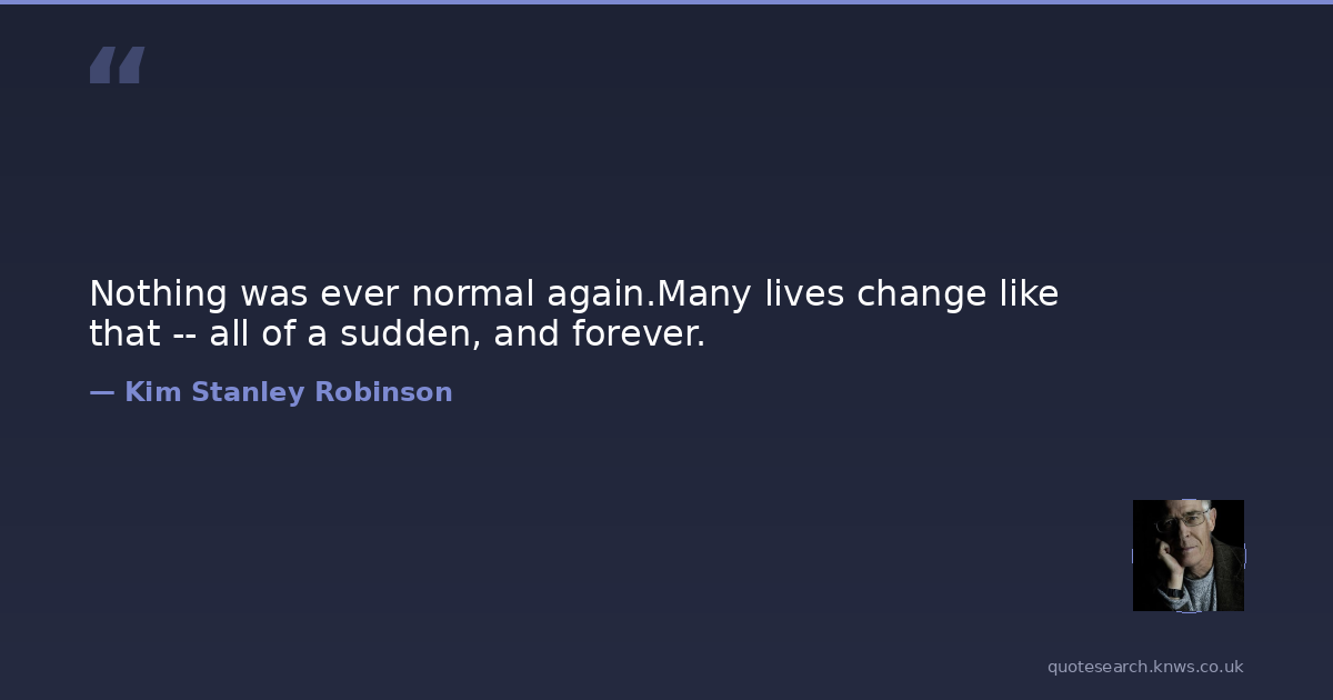 Nothing was ever normal again.Many lives change like that -- all of a sudden, and forever.