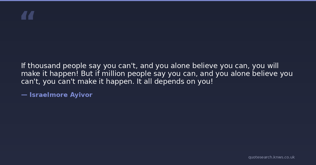 If thousand people say you can't, and you alone believe you can, you will make it happen! But if million people say you can, and you alone believe you can't, you can't make it happen. It all depends on you!
