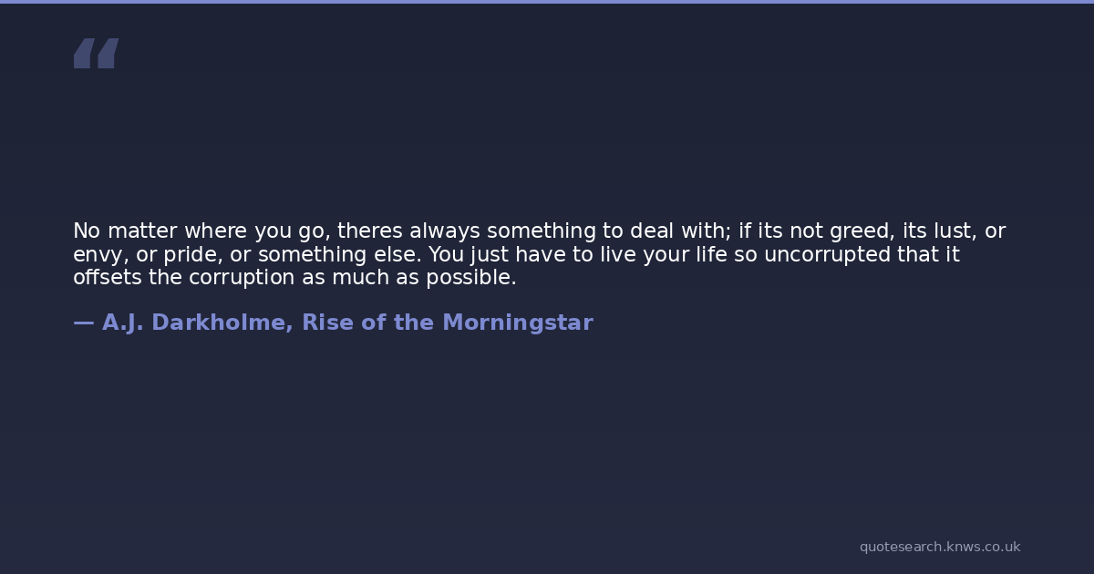 No matter where you go, theres always something to deal with; if its not greed, its lust, or envy, or pride, or something else. You just have to live your life so uncorrupted that it offsets the corruption as much as possible.