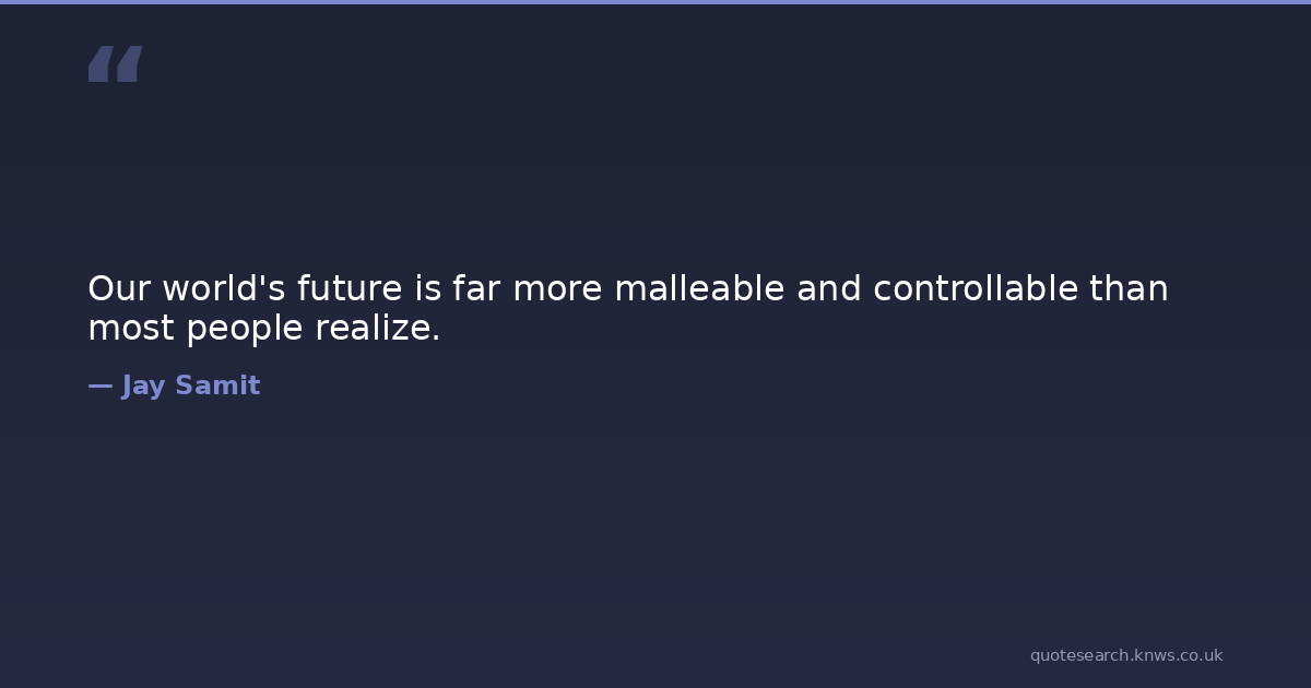 Our world's future is far more malleable and controllable than most people realize.