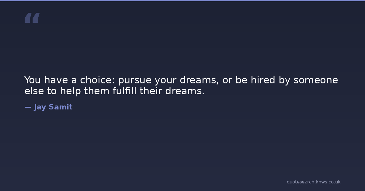 You have a choice: pursue your dreams, or be hired by someone else to help them fulfill their dreams.
