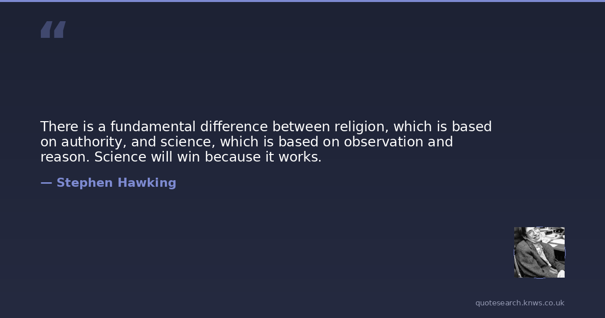There is a fundamental difference between religion, which is based on authority, and science, which is based on observation and reason. Science will win because it works.