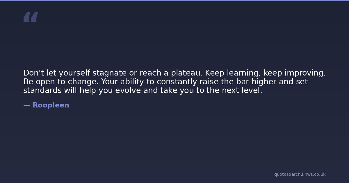 Don't let yourself stagnate or reach a plateau. Keep learning, keep improving. Be open to change. Your ability to constantly raise the bar higher and set standards will help you evolve and take you to the next level.
