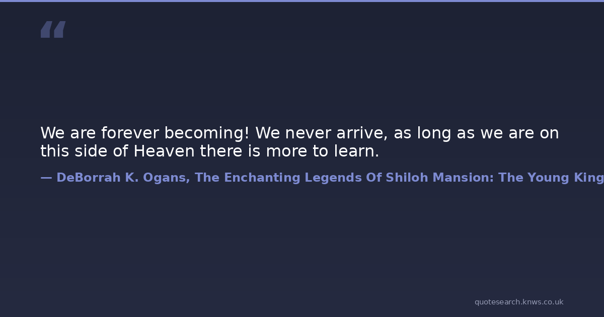 We are forever becoming! We never arrive, as long as we are on this side of Heaven there is more to learn.