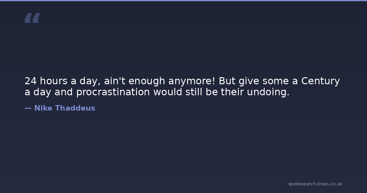 24 hours a day, ain't enough anymore! But give some a Century a day and procrastination would still be their undoing.