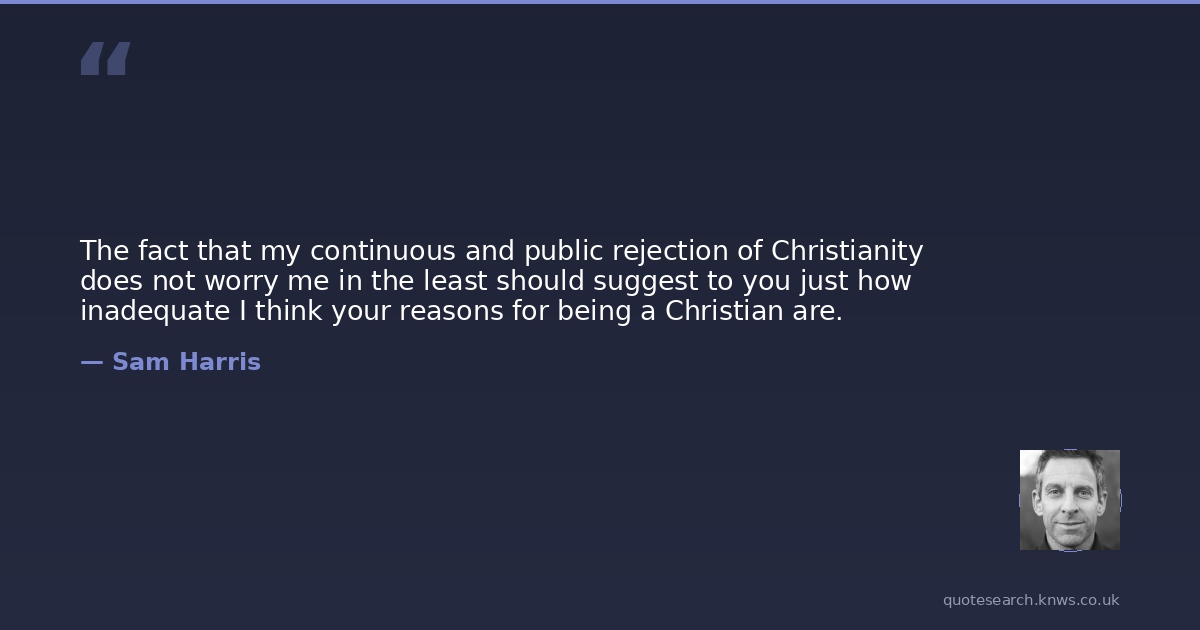 The fact that my continuous and public rejection of Christianity does not worry me in the least should suggest to you just how inadequate I think your reasons for being a Christian are.