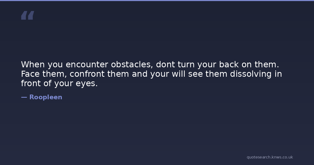 When you encounter obstacles, dont turn your back on them. Face them, confront them and your will see them dissolving in front of your eyes.