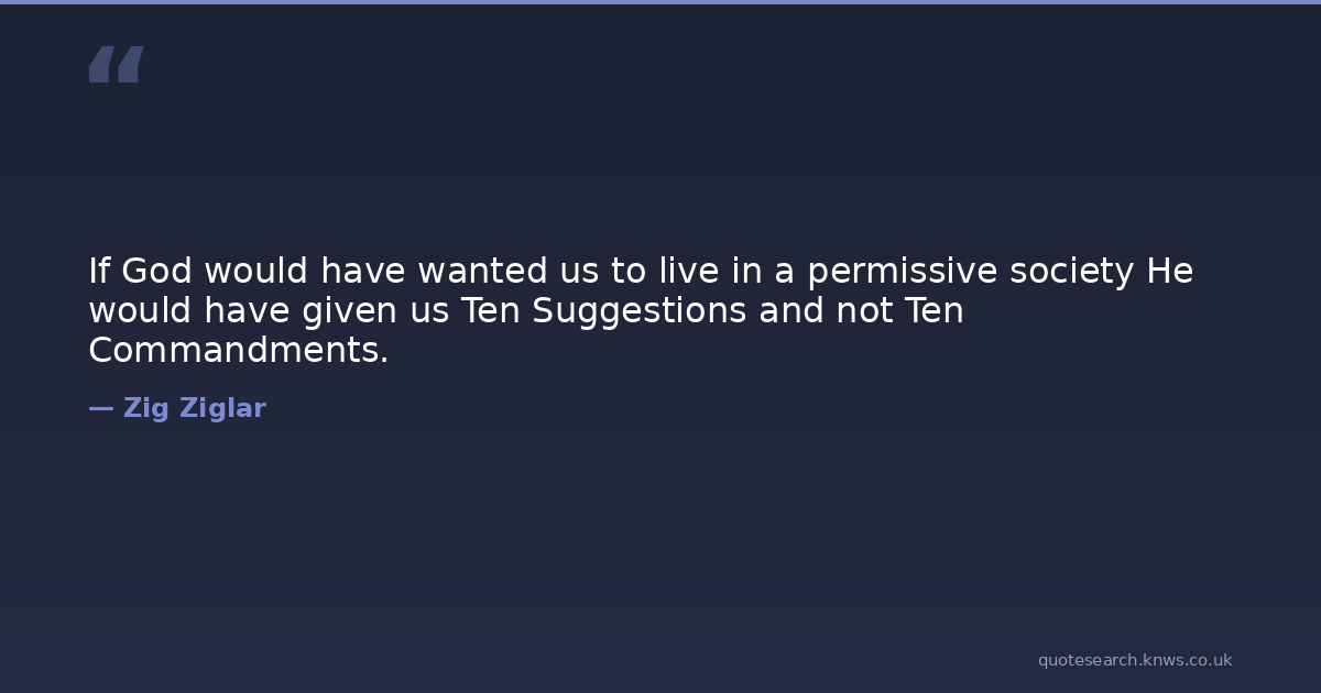 If God would have wanted us to live in a permissive society He would have given us Ten Suggestions and not Ten Commandments.