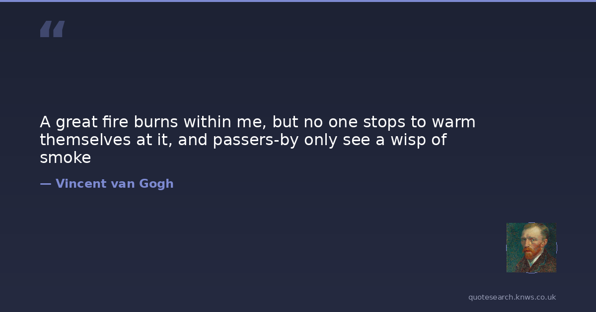 A great fire burns within me, but no one stops to warm themselves at it, and passers-by only see a wisp of smoke