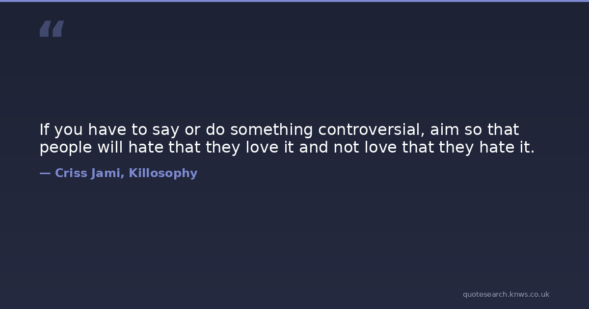 If you have to say or do something controversial, aim so that people will hate that they love it and not love that they hate it.