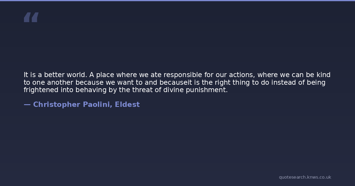 It is a better world. A place where we ate responsible for our actions, where we can be kind to one another because we want to and becauseit is the right thing to do instead of being frightened into behaving by the threat of divine punishment.