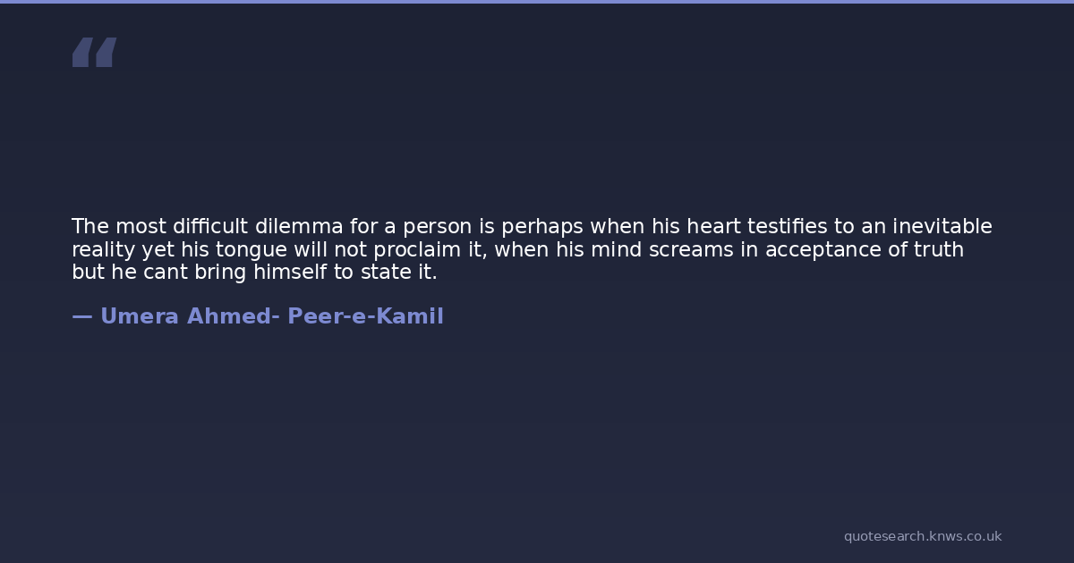 The most difficult dilemma for a person is perhaps when his heart testifies to an inevitable reality yet his tongue will not proclaim it, when his mind screams in acceptance of truth but he cant bring himself to state it.