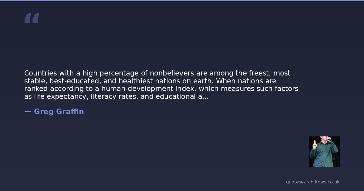 Countries with a high percentage of nonbelievers are among the freest, most stable, best-educated, and healthiest nations on earth. When nations are ranked according to a human-development index, which measures such factors as life expectancy, literacy rates, and educational attainment, the five highest-ranked countries -- Norway, Sweden, Australia, Canada, and the Netherlands -- all have high degrees of nonbelief. Of the fifty countires at the bottom of the index, all are intensly religious. The nations with the highest homicide rates tend to be more religious; those with the greatest levels of gender equality are the least religious. These associations say nothing about whether atheism leads to positive social indicators or the other way around. But the idea that atheists are somehow less moral, honest, or trustworthy have been disproven by study after study.
