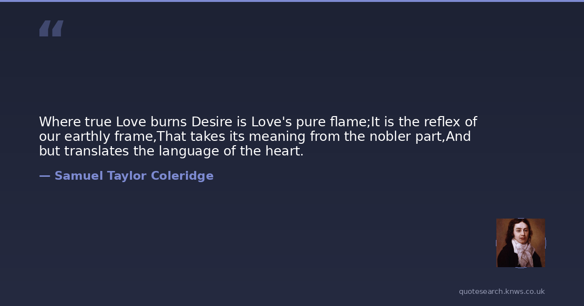 Where true Love burns Desire is Love's pure flame;It is the reflex of our earthly frame,That takes its meaning from the nobler part,And but translates the language of the heart.