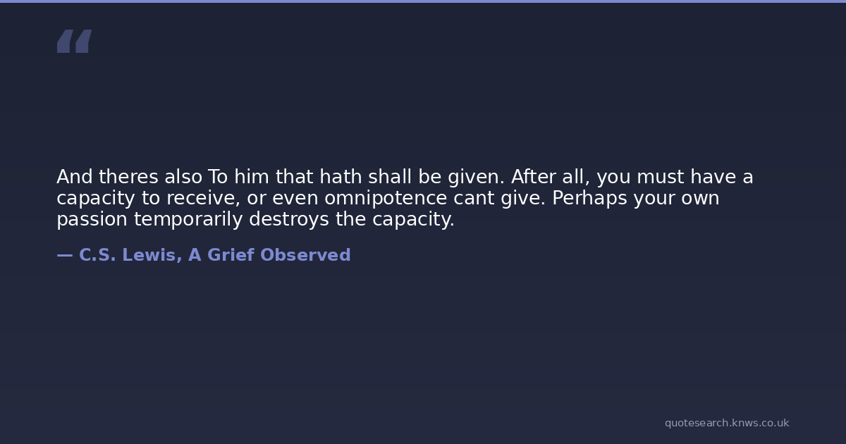 And theres also To him that hath shall be given. After all, you must have a capacity to receive, or even omnipotence cant give. Perhaps your own passion temporarily destroys the capacity.