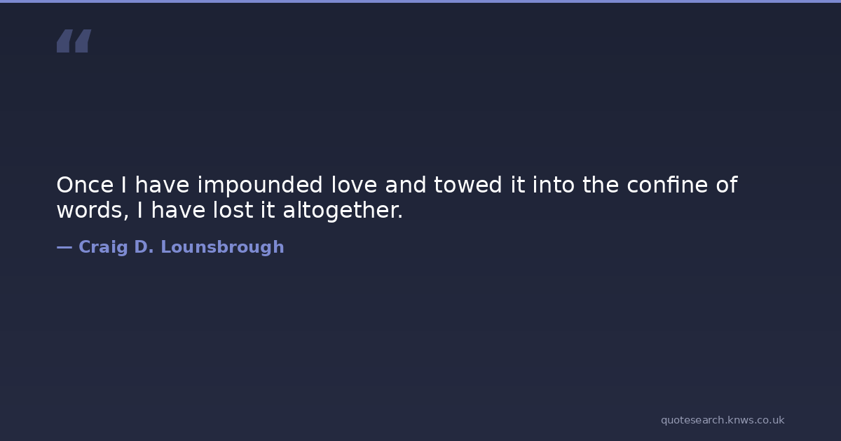 Once I have impounded love and towed it into the confine of words, I have lost it altogether.