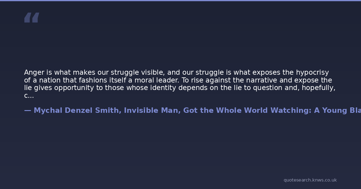 Anger is what makes our struggle visible, and our struggle is what exposes the hypocrisy of a nation that fashions itself a moral leader. To rise against the narrative and expose the lie gives opportunity to those whose identity depends on the lie to question and, hopefully, change.