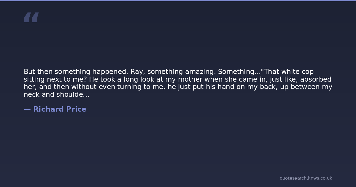 But then something happened, Ray, something amazing. Something..."That white cop sitting next to me? He took a long look at my mother when she came in, just like, absorbed her, and then without even turning to me, he just put his hand on my back, up between my neck and shoulder..."And all he did was squeeze. Give me a little squeeze of sympathy, then rubbed that same spot with his palm for maybe two, three seconds, and that was it."But I swear to you, nobody, in my entire life up to that point had ever touched me with that kind of tenderness. I had never experienced a sympathetic hand like that, and Ray, it felt like lightning."I mean, the guy did it without thinking, I'm sure. And when dinnertime rolled around he had probably forgotten all about it. Forgot about me, too, for that matter... But I didn't forget."I didn't walk around thinking about it nonstop either, but something like seven years later when I was at community college? The recruiting officer for the PD came on campus for Career Day, and I didn't really like college all that much to begin with, so I took the test for the academy, scored high, quit school and never looked back."And usually when I tell people why I became a cop I say because it would keep Butchie and Antoine out of my life, and there's some truth in that."But I think the real reason was because that recruiting officer on campus that day reminded me, in some way, you know, conscious or not, of that housing cop who had sat on the bench with me when I was thirteen."In fact, I don't think it, I know it. As sure as I'm standing here, I know I became a cop because of him. For him. To be like him. God as my witness, Ray. The man put his hand on my back for three seconds and it rerouted my life for the next twenty-nine years."It's the enormity of small things... Adults, grown-ups, us, we have so much power... And sometimes when we find ourselves coming into contact with certain kinds of kids? Needy kids? We have to be ever so careful...