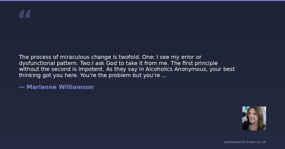 Marianne Williamson was a contemporary American author and politician. Marianne Deborah Williamson is an American author, speaker, and political activist. She began her professional career as a spiritual leader of the Church of Today, a Unity Church in Warren, Michigan. Read more on Wikipedia →