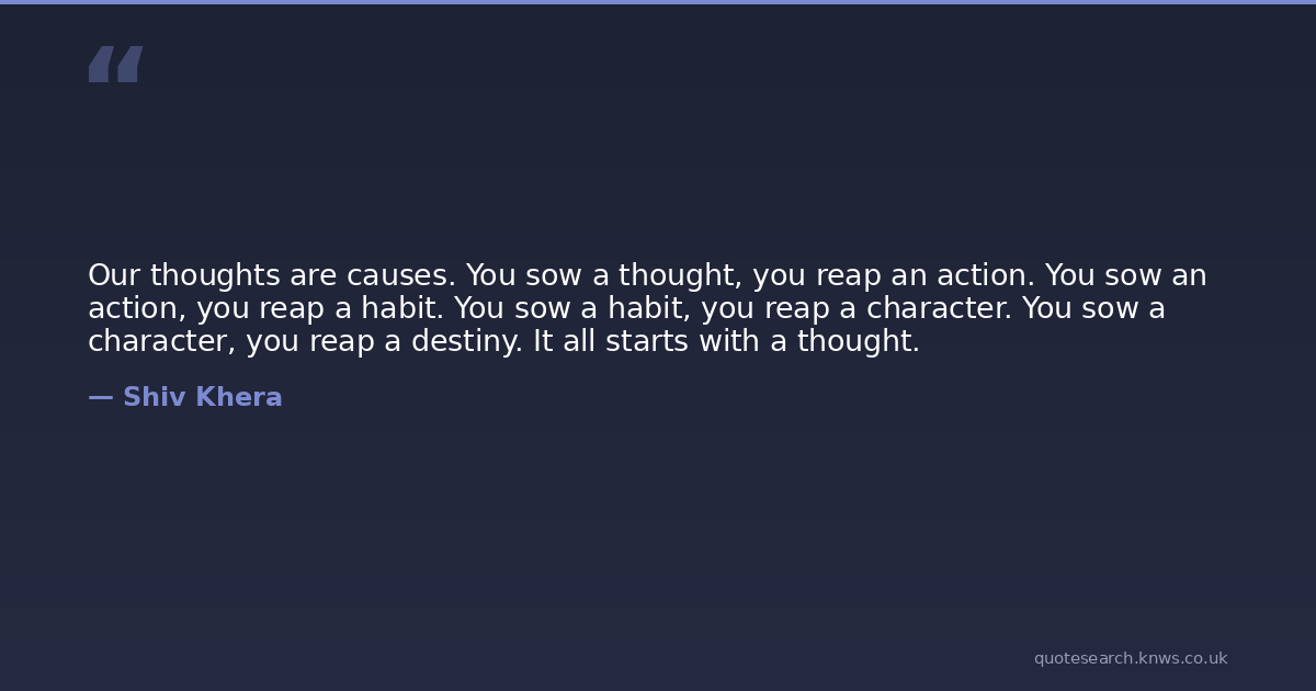 Our thoughts are causes. You sow a thought, you reap an action. You sow an action, you reap a habit. You sow a habit, you reap a character. You sow a character, you reap a destiny. It all starts with a thought.