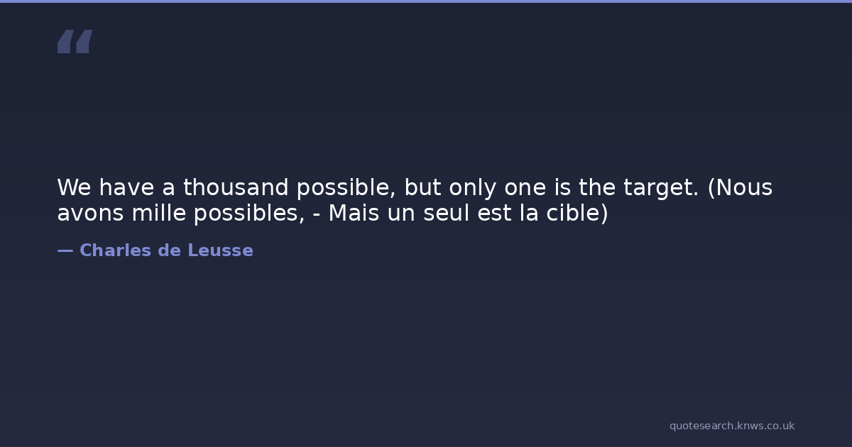 We have a thousand possible, but only one is the target. (Nous avons mille possibles, - Mais un seul est la cible)