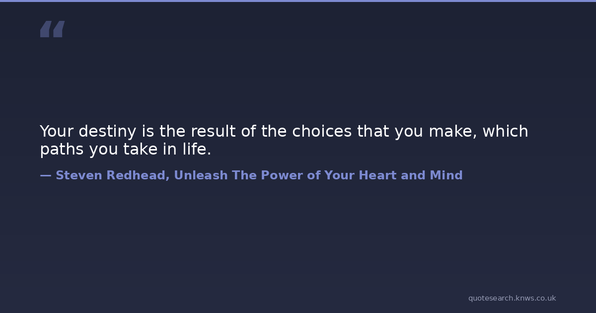 Your destiny is the result of the choices that you make, which paths you take in life.