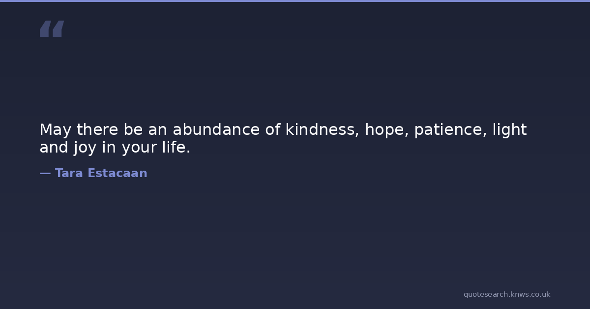 May there be an abundance of kindness, hope, patience, light and joy in your life. hope-for-each-day joy patience peace Download Image Share on X Share on Facebook Copy Link