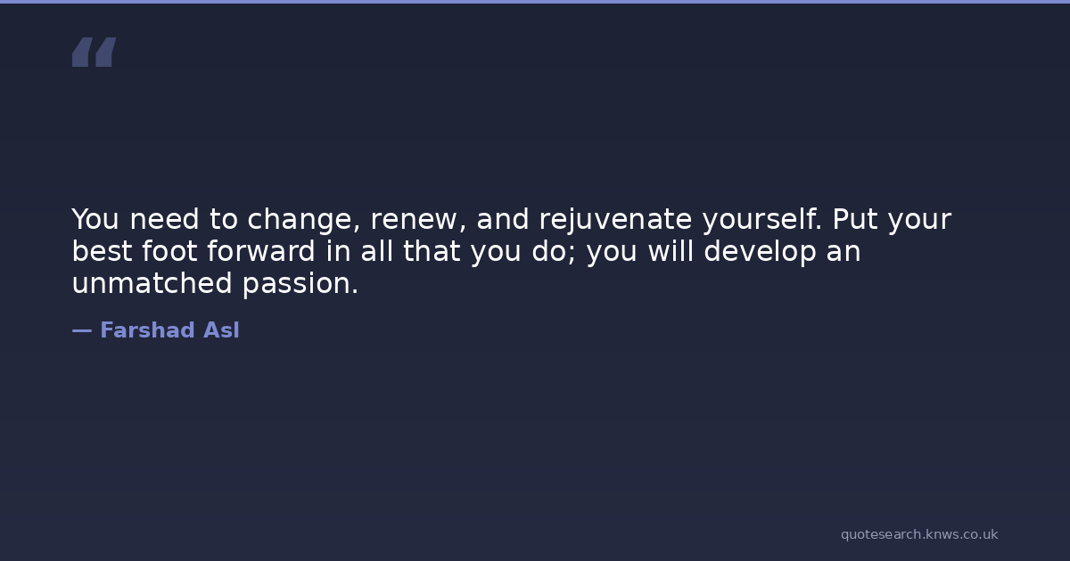 You need to change, renew, and rejuvenate yourself. Put your best foot forward in all that you do; you will develop an unmatched passion.