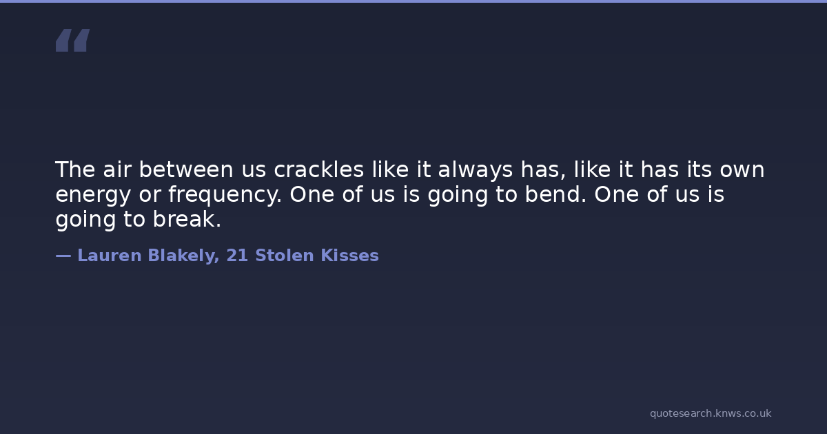 The air between us crackles like it always has, like it has its own energy or frequency. One of us is going to bend. One of us is going to break.